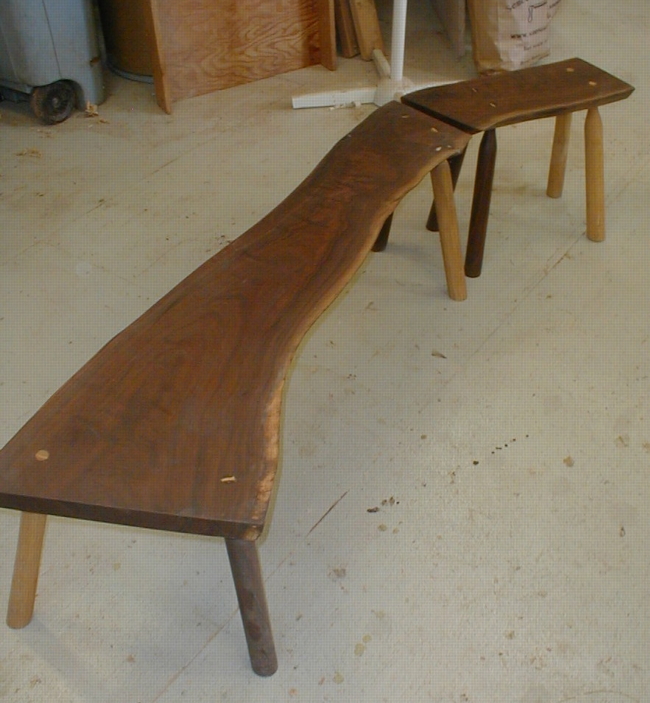 This sturdy bench is built in 2 pieces from one beautiful piece of walnut.